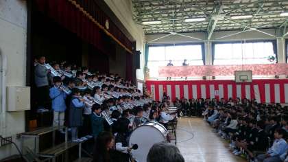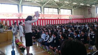 1年生に158名迎えて、5学級でのスタートです。どの子どもも校長先生やPTA会長のお話しをよく聞けていて驚きました。また、2年生からは、歓迎のことばと演奏がありました。2年生の堂々として立派な姿に、1年間の成長を嬉しく思いました。