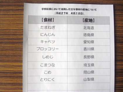 肉というと牛肉、豚肉、鶏肉、鹿肉、いのしし肉など、色々な種類がありますが、世界中で一番多く食べられているといわれているのは、鶏肉です。鶏肉には、様々な栄養が入っていますが、特に、タンパク質という栄養が多く入っています。このタンパク質は、肌や筋肉、髪の毛などの私たちの体をつくる働きがあり、成長期のみなさんには、特に大切な栄養です。よく噛んで、残さず食べましょう。
