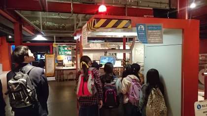 科学技術館でお昼ご飯をおいしく食べて、班ごとに館内を回って遊びました。科学の難しい内容も遊びを通して学べます。体験できるコーナーがたくさんあって、子どもたちは仲よく楽しんでいました。