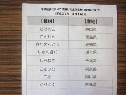4/16 今日の給食