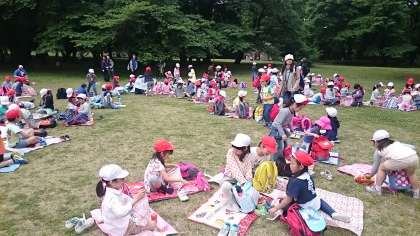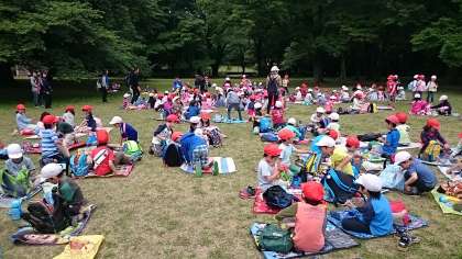 風が少し強くなってきましたので、早目のお弁当にしました。お友だちを誘い合って、楽しく食べました。新しいお友だちができたことでしょう。