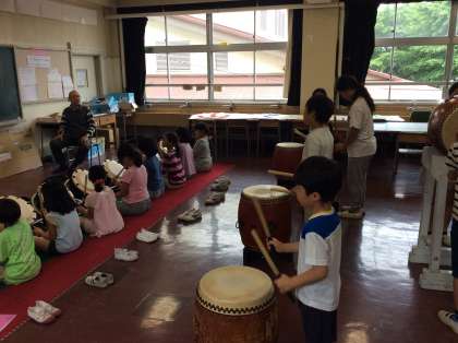 一生懸命に太鼓に取り組む子どもたちの心も一つになっています。