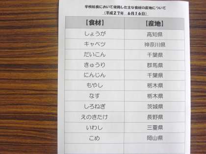 みなさん、なすが一番美味しい季節はいつか知っていますか。それは、夏です。今から夏にかけて太陽の光をたくさん浴びて、いちだんとおいしくなります。和食、洋食、中華、どんな料理にもよく合うなすですが、実は、栄養もたっぷりです。特に、その紫色の皮には、目の疲れを取る働きや血管をきれいにしてくれる働きのあ栄養がたっぷり入っています。ぜひ、残さず食べましょう。
