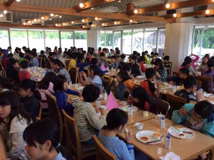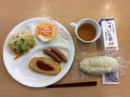 3日目の朝食です。はじめての洋風な食事です。おかわりをするこもたくさんいます。
