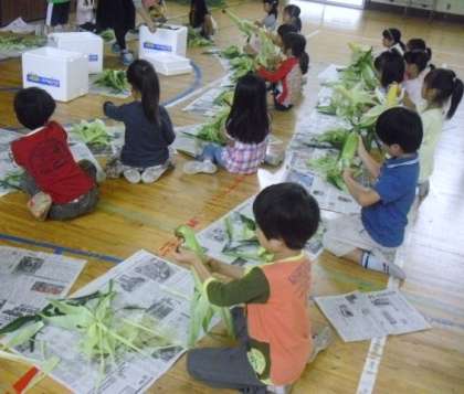 皮をむいてくれた一年生の中には、初めて皮付きのとうもろこしを見たという子もたくさんおり、大きさや皮の多さ、ひげの触感などに興味津々で楽しんで皮むきをしていました。