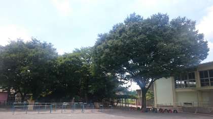 山野の山の前の大きなケヤキが、7月29日か30日にとうとう伐採されます。ずっと山野小学校を見守って来てくれてきただけにさびしい気持ちです。しかし、先日、このケヤキの子どもを採ることに成功してまして、農園に保管してもらってます。新しい校舎が完成してから植えられる予定です。また、伐採したケヤキは、木材として新しい校舎での表示等に使う計画を進めています。そして、枝は、児童に記念として何かできないか検討中です。いよいよ工事が27日から始まります。