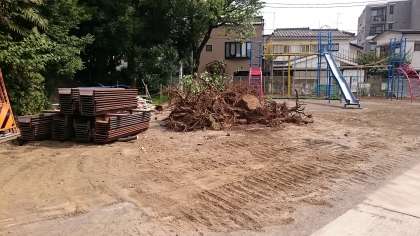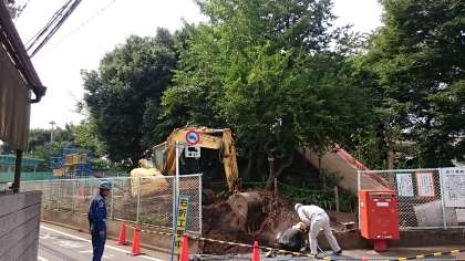 ジャングルジムや登り棒の撤去を終え、山野の山の裏側の道路の拡幅工事に入っています。