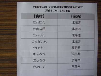 9/15 今日の給食