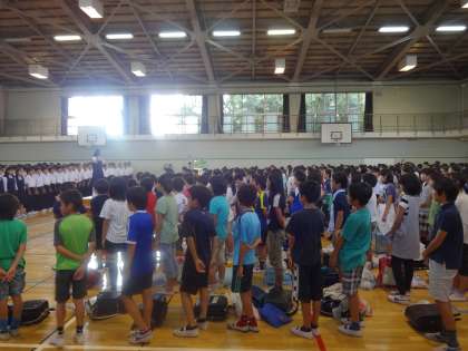 最後には中学2年生全員と3校の6年生で歌を歌いました。半年後の中学校生活が少し身近に感じられた機会となりました。