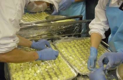 今日はひと足早い十五夜献立ということで、満月に見立てた黄色い白玉だんごと里芋を入れたお月見汁を作りました。団子をのどに詰まらせないよう、よくかんで食べましょう。そして、明後日の夜は、ぜひまん丸のお月さまを眺めてみてください。