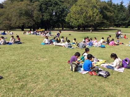 砧公園でお弁当です。 みんなとてもいい顔をしています。