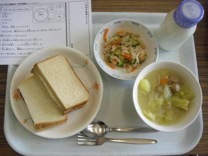 今日は、二食サンド、牛乳、ツナサラダ、ポトフです。