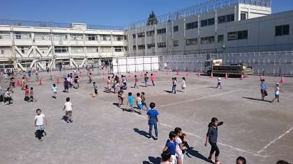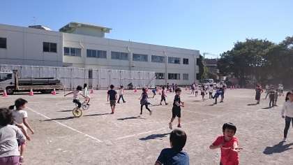 仮囲いが3年生教室へ向けて伸びてきました。いよいよ今日が1グラで広く遊べる最後の日になりそうです。