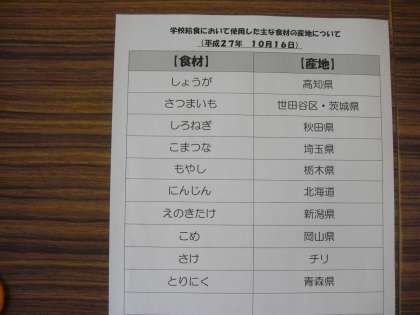みなさん、さつまいもごはんを見てください。今日のごはんには、昨日2年生が一生懸命掘ってきてくれたさつまいもが使われています。今年のさつまいもは、根っこが長く伸びて地面の奥深くに埋まっていたということなので、2年生のみなさんもさつまいもを掘り出すのが大変だったと思います。今日このおいしいさつまいもごはんを食べることができるのは、2年生のみなさんが頑張ってくれたおかげです。みなさん、2年生にありがとうの気持ちをもっていただきましょう。