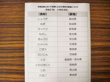 みなさん、明後日は何の日か知っていますか。明後日は、十三夜です。十三夜とは、十五夜の次に月がきれいに見える日です。十五夜と同じで、そのときに収穫されるものをお供えし、お月見をします。この時期は、栗や豆がとれる時期なので、十三夜のきれいな月のことを栗名月と言ったりもします。今日は、ひとあし早いですが、この十三夜の献立ということで、栗や大豆、枝豆などを使っています。よくかんで食べましょう。