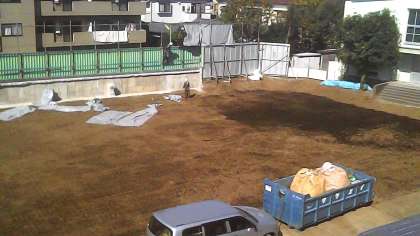 プールの解体工事がほぼ終了してきました。今日は、工事用の囲いを撤去する作業が進められていました。プールの敷地を改めて見渡すと広々としています。写真は、小川さんの提供です。