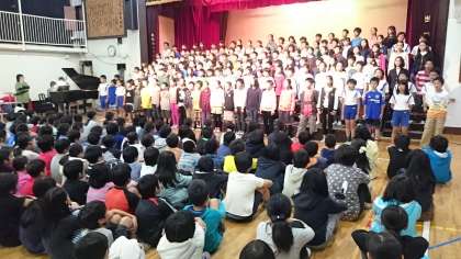 5,6年生の合同練習がありました。澄んだ歌声が体育館一杯に広がりました。随分と気持ちが入ってきました。