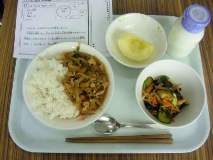 いよいよフェスタが始まりました。午前中の演目では、今までの練習の成果を発揮できましたか。今日は、スタミナをつけてくれる豚肉を使ったおろし豚丼です。しっかり食べて午後の演目もがんばりましょう。