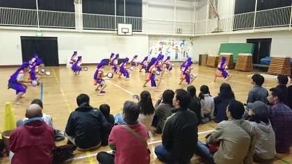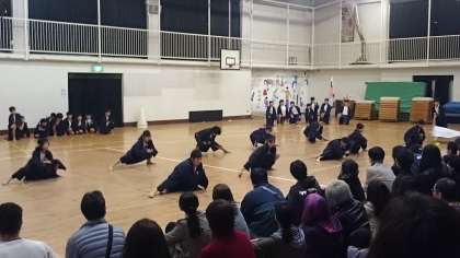 降雨のため、5,6年生の第1校庭の演目が体育館で行われました。今日は、一回のみの演舞に力を込めました。