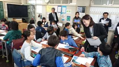 小学校3校の砧小、明正小、山野小の先生方が山野小学校に集まって研究授業を行いました。子どもたちは、大勢の先生方に囲まれ少し緊張しながらも、力を十分発揮していました。授業後には、活発に意見交換が行われました。