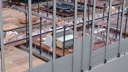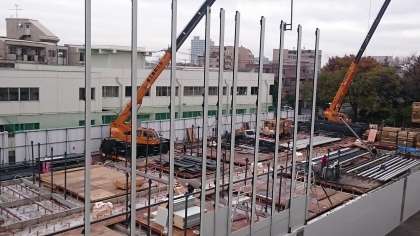 大きなクレーン車が2台入りました。高い柱がさっそく立ち始めました。