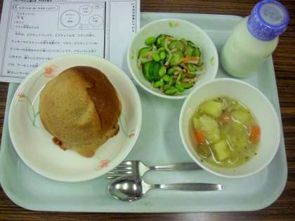 今日は、ビスキュイパン、牛乳、ポトフ、ツナと枝豆のサラダです。