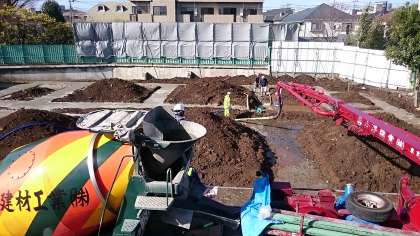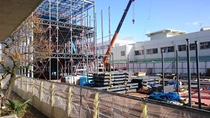 朝は、ザーザーとひどく降りましたが、午後からはよく晴れて風も強く、変わりやすい天気でした。そんな天気の中にも関わらず、安全に気を付けながら、工事が進められていました。