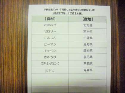 みなさん、今日は、今年最後の給食です。この一年間をふり返ってみましょう。手洗いや身支度は、きちんとできましたか。準備や片付けは、給食当番を中心にクラスで協力して行いましたか。好き嫌いをしないで、バランスよく食べることができましたか。マナーを守って周りのお友達と楽しく食事ができましたか。できたことは、これからもぜひ続けましょう。できなかったことは、これからがんばりましょう。