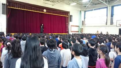 始業式の前には、新年の幕開けにふさわしく山野太鼓の皆さんによる「世田谷太鼓」の披露がありました。素敵な気持ちで3学期がスタートしました。