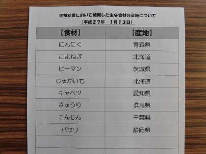 今日は、今年最初ということで、昨日の給食の様子についてお知らせします。昨日は、菜めし、魚、すまし汁、果物という献立で、ごはんとすまし汁には、にんじんや小松菜、水菜、大根、大根の葉っぱ、三つ葉などの野菜をたくさん使ったので、給食室では、“苦手な人も多いかな、たくさん残ってくるのかな”と心配していました。しかし、全体の残りは、5%ほどで、いつも以上にたくさん食べてくれたので、給食室は、大喜びでした。片付けでも、食器やお箸がきれいにそろえられていて、とても良かったです。良いスタートを切ることができたので、ぜひ、これからも続けてください。