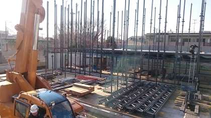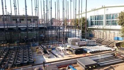 第2仮校舎は、外壁が凄い勢いで建ち始めました。基礎部分が仕上がると進みが早くて驚きました。