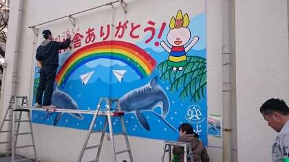 山野おやじネットの皆さんが2グラ前の校舎に壁画を描いてくれました。絵が本格的でうまいです。やまポンとやまのんも描かれています。校舎との楽しい思い出が一つ加わりました。ありがとうごさいます。