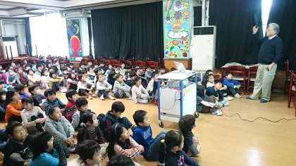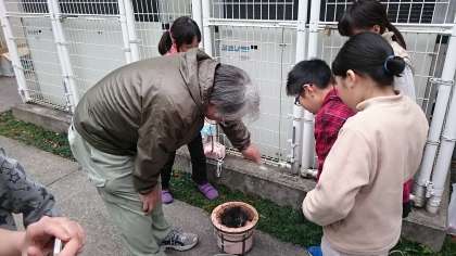 学校公開には、たくさんの出前授業がありました。昔の道具とくらしの授業では、最初に炭ついて学び、その後は、七輪を使って実際に火を起こすことをしました。子どもたちは、火を扱うことの難しさや、煙の薫りや、何と言っても炭で焼いた餅やエビの美味しさを体験を通して学びました。