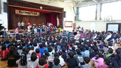 4年生によるミュージックフェスタ?が開催されました。交流を行ってきたデイサービスの方に感謝の気持ちを伝えるミニ音楽会です。NHKの朝の連続テレビ小説のテーマ曲を合奏したり、唱歌を合唱したりと親しみやすい曲を披露しました。デイサービスの皆様にも大変喜んでいただきました。