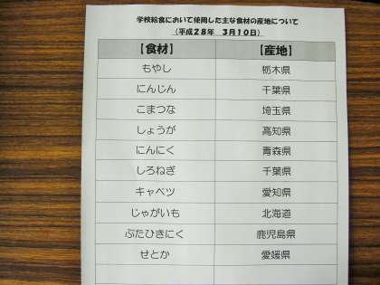 今日は、先日給食委員会が行った“もう一度食べたい給食”の第3位に輝いた『みそラーメン』です。ラーメンのスープの中には、コーンや挽肉、野菜などがたくさん入っているので、給食当番の人は、よくかき混ぜて配膳してください。食べるときは、ラーメンのスープの中に中華麺と煮たまごを入れて食べましょう。