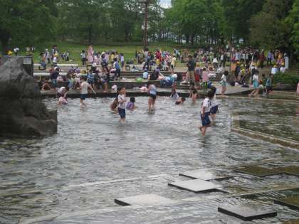 中には、全身びしょ濡れで、温泉にいるかのように水につかる子も…。