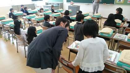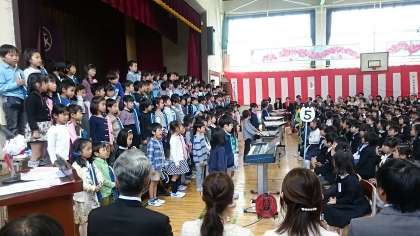 とてもいいお天気の下、入学式が行えました。6年生がとっても優しく1年生を教室まで案内していました。1年生は、リラックスして入学式に参加できていました。2年生の歓迎のことばと合奏もとてもりっぱでした。