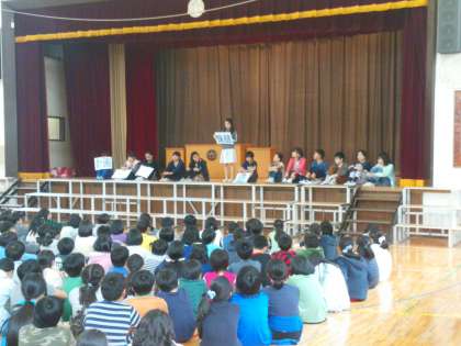 6年生の代表児童が各委員会の活動内容を説明しました。