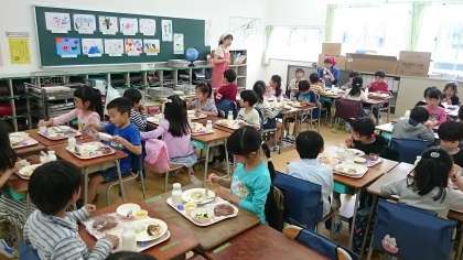 今日から1年生の給食も始まりました。初めての給食なので、準備や役割や運び方などなど確認することがたくさんあります。やまのき会の皆さんが、教員の他に一名ずつ教室に入ってお手伝いくださいました。本当にありがたいです。魚にサラダと1年生にはなかなかハードルの高いメニューでしたが、ほとんどの子どもがよく食べていました。