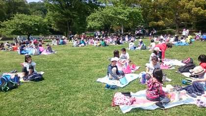 お昼の前の集合時間内にどのグループも本部に戻って来ました。戻って来たグループ毎にお昼ご飯です。よく協力して行動できています。食べ終わるとまた、グループで集まって仲良く遊んでいました。