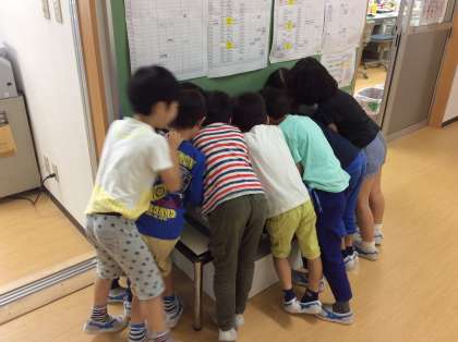 雨の日の休み時間には、1年生がたくさん校長室を訪ねてきます。