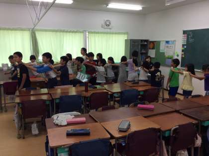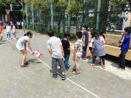 1年生から6年生までが縦割り班に分かれ、楽しく交流あそびをしています。