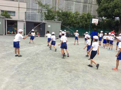 今年から世田谷区のルール変更に合わせて、スポーツフェスタの長なわのルールを変更しています。縄の軽量化と跳ぶ時間が5分間から3分間になりました。