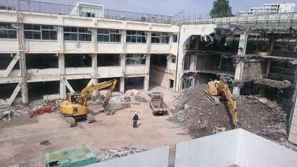 東校舎に続いて中央校舎も解体が始まってきました。始まるとみるみる変わっていくので驚いています。