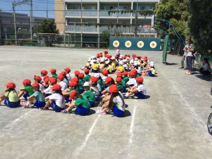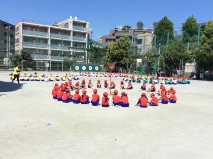 応援席から、男女サンドイッチになって玉入れの隊形に移動するのは、なかなか難しいです。