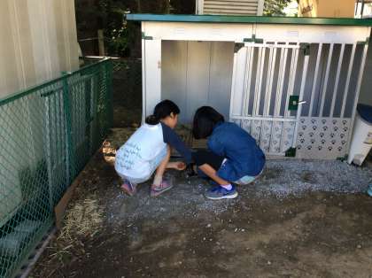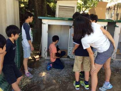 今日の飼育委員会の時間に、新しい飼育小屋に引っ越しをしました。