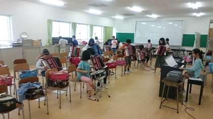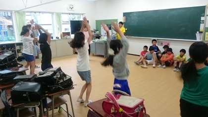 6校時にスポーツフェスタの係活動がありました。応援団ばかりでなく、他の係もがんばっています。写真は、音楽係と準備運動係です。