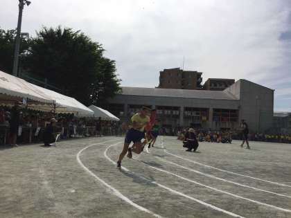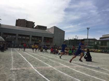 高学年のリレーは、スピードが早くバトンワークが難しくなります。
