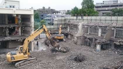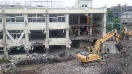 東校舎の屋上や3階がなくなってきました。