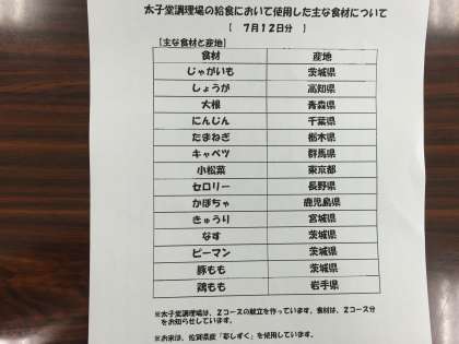 今日は夏野菜カレーライスです。夏野菜の、なす、ピーマン、かぼちゃが入っていて、バターの香りがする、とても美味しいカレーです。
